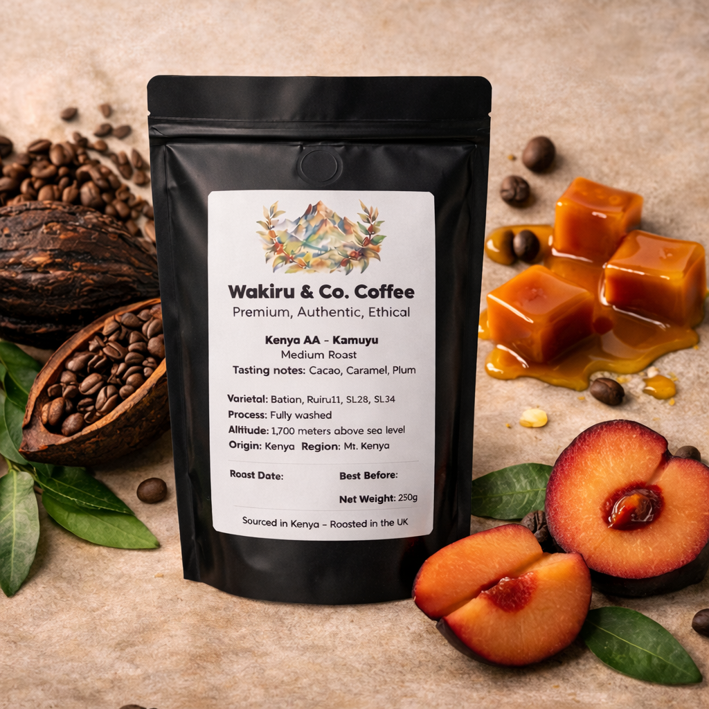 Grown at high altitudes in Nyeri, this AA selection represents the pinnacle of Kenyan coffee. A beautifully roasted coffee with cacao richness, deep caramel sweetness and soft notes of ripe plum. We recommend brewing this coffee as a filter or pour over.